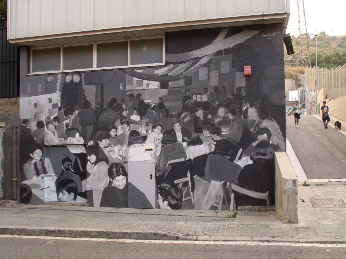 Les parets de l'Ateneu han estat testimoni de 40 anys d'acció, lluita i diversió. I són elles les que ens parlen d'aquest procés històric a través d'un nou mural. Partint d’una fotografia d’arxiu, aquest recrea el sopar del Grup de Dones de Nou Barris que vam acollir l’any 1988. Celebraven 10 anys de recorregut, lluita i territori. Rosa Miró, membre del grup i autora de la fotografia original, contextualitza la trobada: «el grup de dones es reunia cada 8 de Març -dia de la dona- en diferents espais del barri. Aquell any ho vam fer a l’Ateneu».
