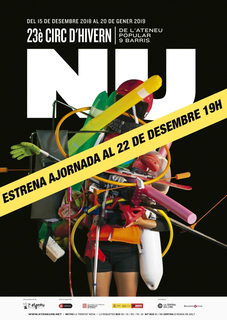 La creació d'un espectacle és un camí llarg en el qual participen moltes persones. Des del setembre artistes i personal tècnic han estat treballant en Nu, el 23è Circ d'Hivern. Volíem estrenar l'espectacle dissabte 15 de desembre, tot i això un incident lleu ens farà ajornar l'estrena una setmana. Això vol dir que ens trobarem el 22 de desembre a les 19h per donar el tret de sortida. No patiu, ho tenim tot en marxa.