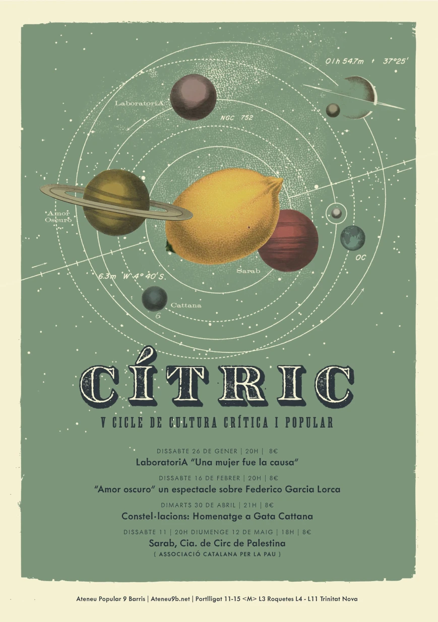 El Cítric és un cicle amb caràcter propi, que posa en valor la capacitat de la cultura per a transformar allò que ens rodeja des de la crítica i la cultura popular. Des de l’Ateneu volem reafirmar el nostre compromís amb aquelles propostes capaces d’aglutinar valors i qualitat artística en una mateixa proposta.