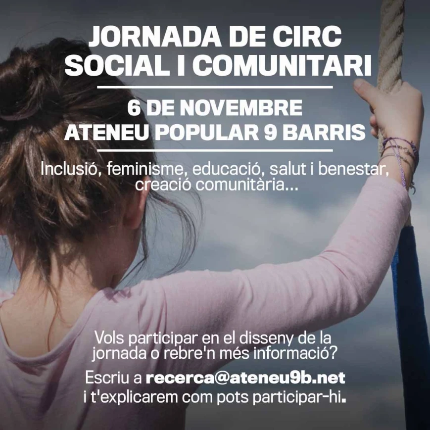 Reserva't la data! El 6 de novembre el sector del circ social i comunitari té una cita a l'Ateneu Popular 9 Barris. Una jornada per retrobar-nos, compartir experiències i descobrir les línies de treball que s'estan desenvolupant en el marc de la mesura Circ Comunitari del Pla d'Impuls del Circ*: circ i perspectiva de gènere, circ i diversitat funcional, resignificació del circ social, mapa català d'entitats i projectes amb impacte en la societat i comunitari...