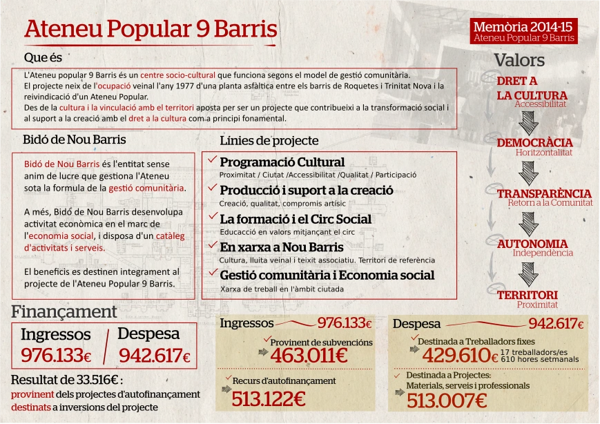 2 de desembre 2015 Memòria de la temporada 2014-15 Memoria de l'Ateneu Popular 9 Barris 2014-205Descarrega-la aquí.