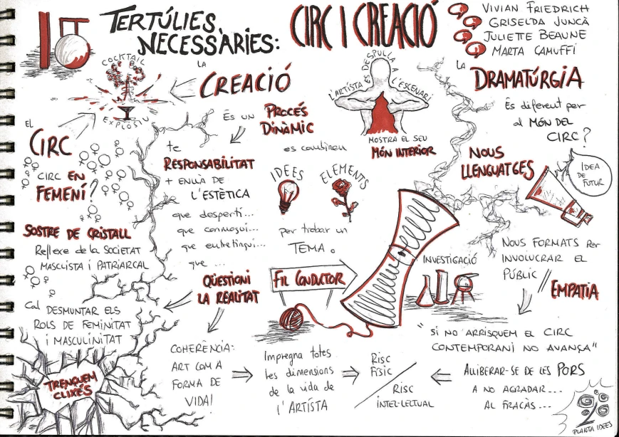 Una de les activitats que vàrem realitzar va ser un espai on compartir amb 5 dones les idees, experiències, dubtes i treball sobre la creació de circ per generar un moment obert de paraules i opinions.