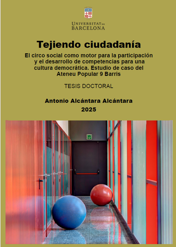 El passat 6 d’octubre, a l’Aula Seminari Alexandre Sanvisens de la Facultat d’Educació de la Universitat de Barcelona, Antonio Alcántara va defensar amb la qualificació d’excel·lent cum laude la seva tesi doctoral titulada “Tejiendo ciudadanía. El circo social como motor para la participación y el desarrollo de competencias para una cultura democrática. Estudio de caso del Ateneu Popular de 9Barris”, dirigida per Asun Llena Berñe, en el marc del programa de Doctorat en Educació i Societat. Aviat, la tesi serà pública als repositoris digitals de la Universitat de Barcelona.