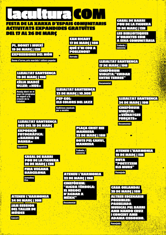 Podeu llegir l'especial de La Directa sobre la XEC clicant aquí. Des de la Xarxa d'Espais Comunitaris (XEC) et presentem laculturaCOM, la primera fes...