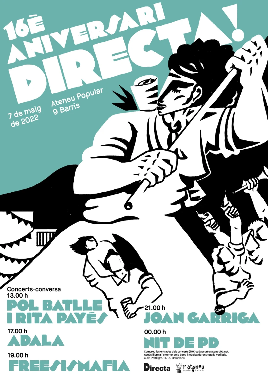El cartell d’aquest any està inspirat en un disseny d’Helios Gómez (Sevilla, 1905 – Barcelona, 1956) sevillà, gitano i barceloní, artista d’avantguarda, activista polític, comunista llibertari i flamenc. Paula R. Zapata ha versionat un dels seus cartells amb elements que defineixen la Directa: el protagonista és una dona, el fusell és un diari, la fàbrica és l’Ateneu 9 Barris i les milicianes són persones que ballen. Segons Zapata, “el moment històric és prou diferent, però si alguna cosa pot vincular la Directa a aquest corrent estètic, és la voluntat inesgotable de plantar cara i denunciar les injustícies socials per lluitar un present i un futur dignes de ser viscuts”.