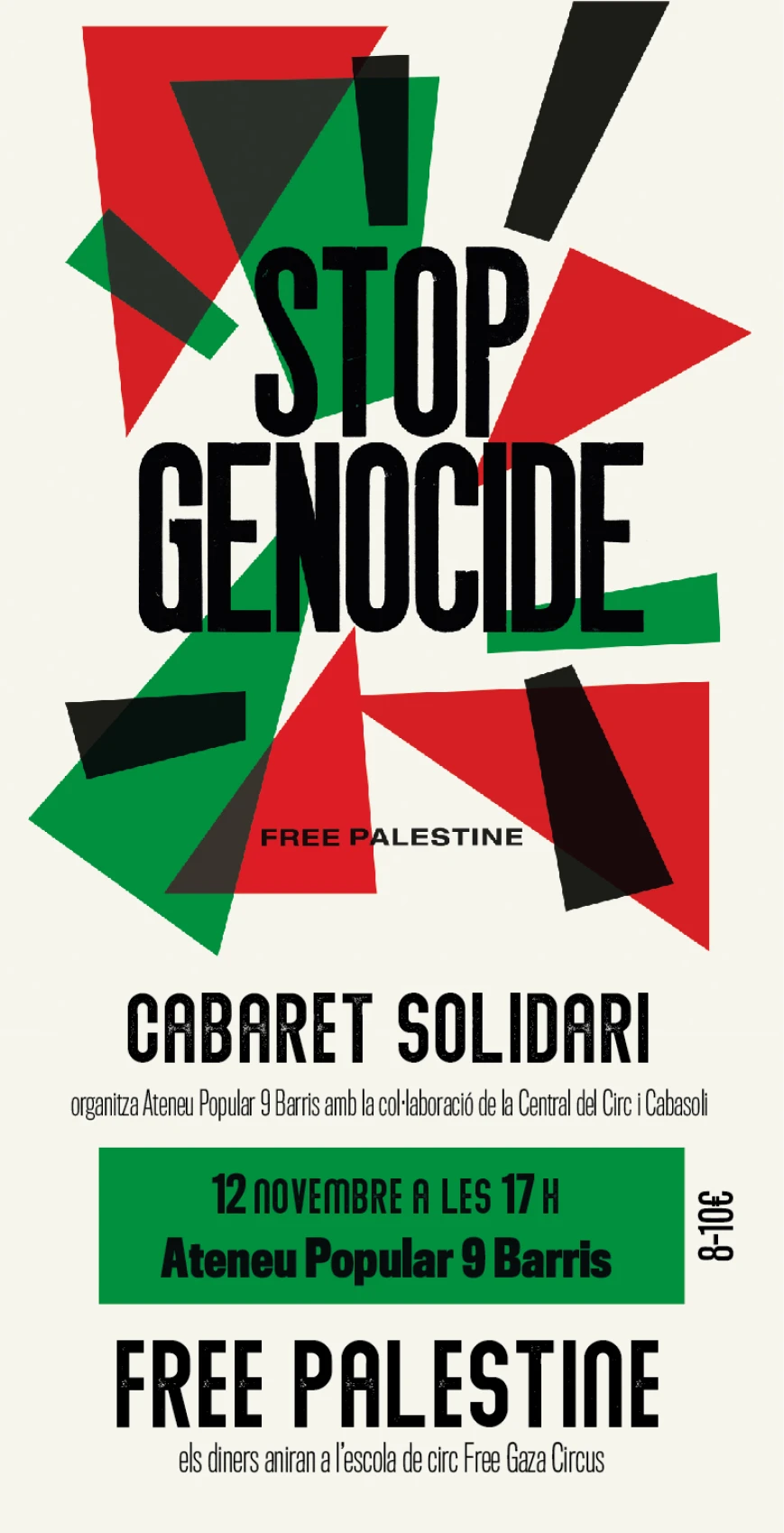 Per això us convidem a unir-vos a nosaltres en aquest cabaret solidari que hem organitzat amb la col·laboració de la Central del Circ i Cabasoli. Els fons recaptats seran destinats a l'escola de circ Free Gaza Circus. A través d'aquest esdeveniment, volem fer un crit clar i enèrgic contra aquest genocidi i demanar un cessament immediat de la violència contra el poble palestí.
