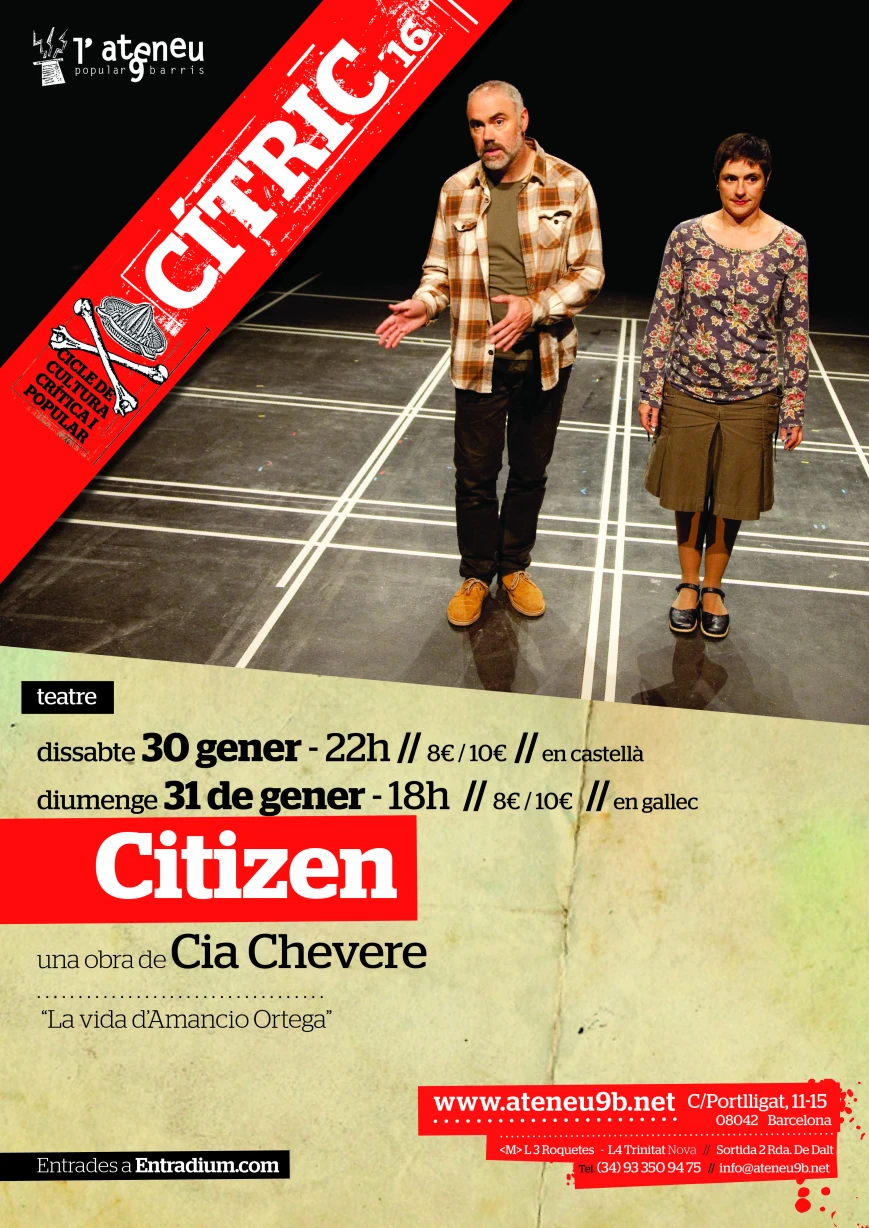 Citizen és la primera part d'una trilogia sobre la figura d'Amancio Ortega per part de la Cia Chevere. Una ficció teatral que qüestiona el relat comú de La Transició, un viatge a l'any 1975 per descobrir la relació entre la mort de Franco, Zara i la globalització.
