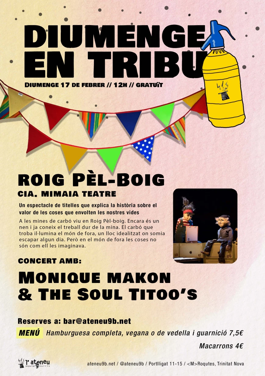 Els diumenges en tribu són programacions gratuïtes per a totes les edats i tipus de tribus, grups i famílies possibles. Espectacles infantils i concerts, amb menús a preus populars amb un carrer sense cotxes per poder gaudir dels diumenges: