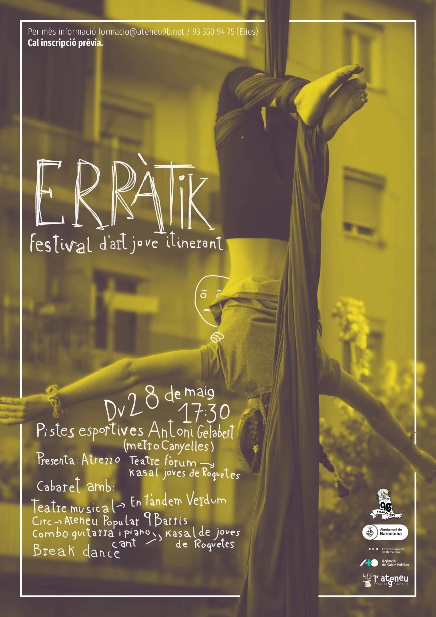 Serà un Erràtik una mica diferent, ja que no hi haurà espai de tallers, però comptarem amb una peça de teatre fòrum que no ens deixarà indiferents i amb un cabaret carregat de números de diferents grups de joves del barri. Us esperem amb molta il·lusió!