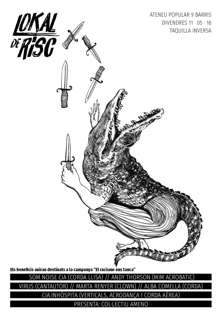 Torna el Lokal de Risc, el cabaret experimental i solidari de l'Ateneu. En aquesta edició la taquilla anirà destinada a la campanya "El racisme ens tanca", que denuncia la falta de drets de les persones migrades.