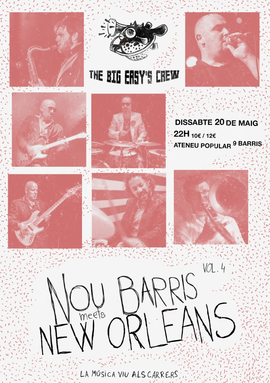 Una crew formada per set músics experimentats (A Contra Blues, Rambalaya, Fundación Tony Manero, Barcelona Jazz Orquestra...), compromesos amb la missió de portar un bocí de New Orleans a Nou Barris, on la festa i la bona música en són els protagonistes. Un d’aquells concerts que anys després dius: JO HI VAIG SER!!!