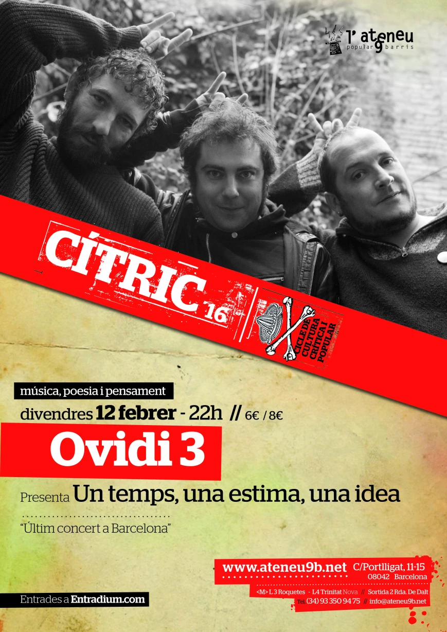 Hem buscat una nova data el més aviat possible i finalment el concert d'Ovidi3 a l'Ateneu Popular 9 Barris es farà el Diumenge 28 de febrer 18h