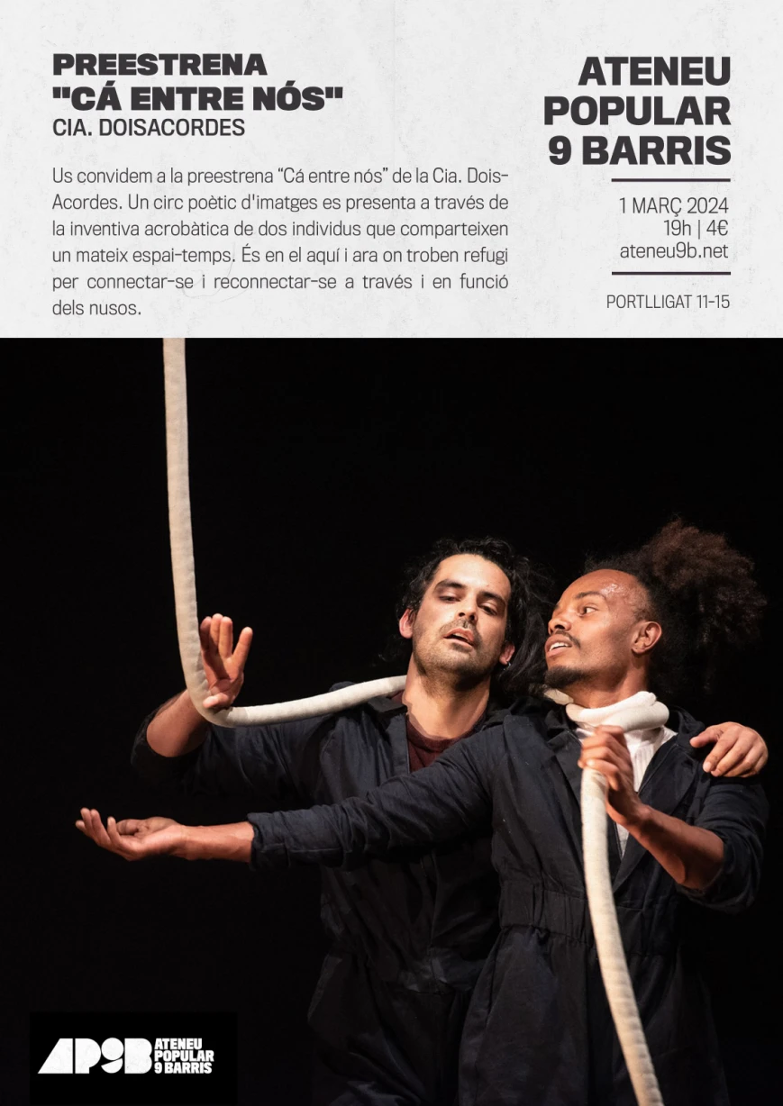 Preestrena de l'espectacle "Cá entre nós", produït per la Cia. DoisAcordes. Aquesta preestrena s'emmarca dins dels projectes de suport a la creació de l'Ateneu.