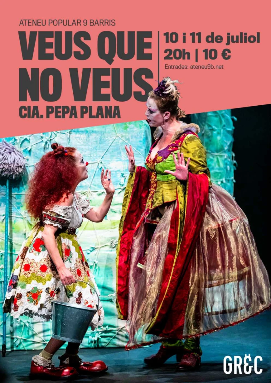 Per primera vegada arriba el Festival Grec a Nou Barris, i ho fa amb l'espectacle "Veus que no veus" de la cia. Pepa Plana. Dos dies on podreu gaudir d'aquest espectacle i d'aquestes grans artistes.