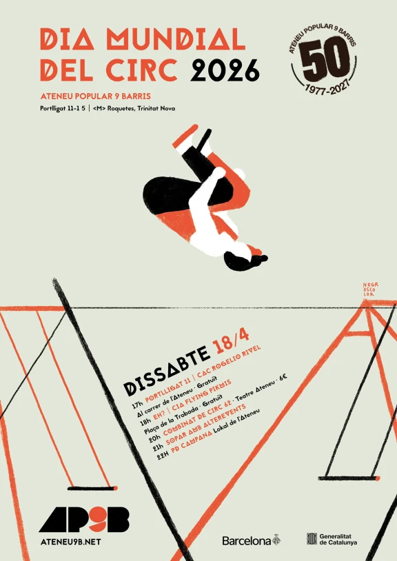 L'Ateneu Popular 9 Barris ofereix quatre beques Barcelona Crea - Fàbriques de creació 2026, dotades amb 6.000€ bruts cadascuna. Dividides en dues modalitats, s’orienten a projectes de recerca en circ i accessibilitat i a donar suport a la creació de circ en l'espai públic.