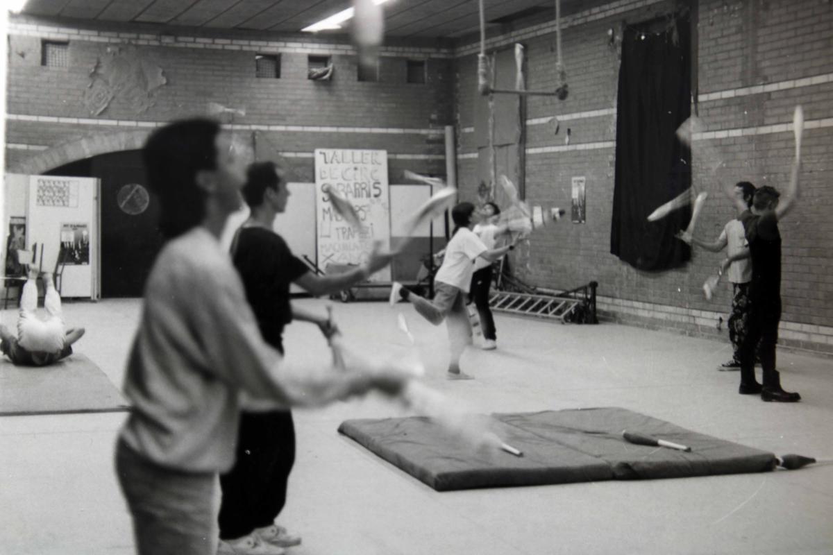El circ havia trobat aviat a l'Ateneu un terreny fèrtil on prosperar. Des de mitjans dels anys vuitanta van començar a ajuntar-nos a entrenar tècniques circenses en l'Ateneu un grup de gent inquieta del barri, al que es va anar sumant més gent de la ciutat amb ganes d'aprendre noves habilitats. Aleshores eren molt pocs els espais a Barcelona on pogués practicar-se tècniques circenses. El 1983 es va fer un primer curset d'acrobàcia i a partir de 1985/1986 van anar prenent forma els tallers regulars per a adults. També van començar en aquestes dates els tallers per a nens i nenes de l'entorn de l'Ateneu, la qual cosa va suposar el començament de la nostra vocació pel Circ Social que tant hauríem de desenvolupar més endavant, encara que en aquells dies no sabéssim que es tractava d'això.