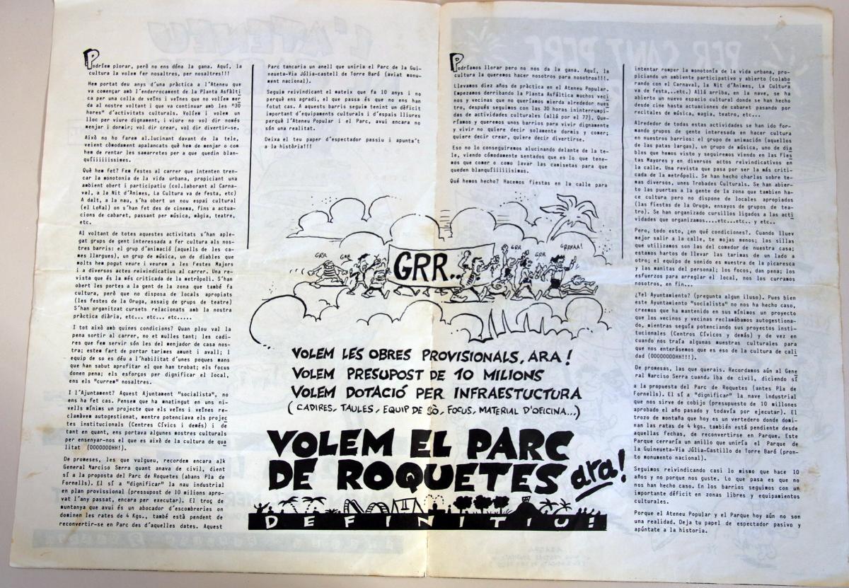Seguim reivindicant el mateix que fa 10 anys i no perquè ens agradi, el que passa és que no ens han fotut cas. A aquest barri seguim tenint un dèficit important d'equipaments culturals i d'espais lliures perquè l'Ateneu Popular i el Parc, avui encara no són una realitat.